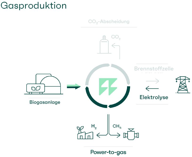 Der Strom für den Elektrolysebetrieb kommt aus dem Stromnetz, und zwar immer dann, wenn zu viel Wind- und Solarstrom vorhanden ist. Leider muss der Netzbetreiber dann Windräder und PV-Anlagen abschalten. Die Alternative dazu sind abrufbare Stromverbraucher, wie das beschriebene Elektrolysesystem. Anstatt ein Windrad abzuschalten, fordert der Stromnetzbetreiber das Einschalten des Verbrauchers an, damit das Stromnetz stabilisiert wird. So wird aus überschüssigem Strom synthetisches Methan, oder „power to gas“ als intelligente Stromspeicherlösung im Gasnetz. Selbstverständlich kann auch „nur“ Wasserstoff erzeugt werden, das ist dann die Option für die Zukunft.